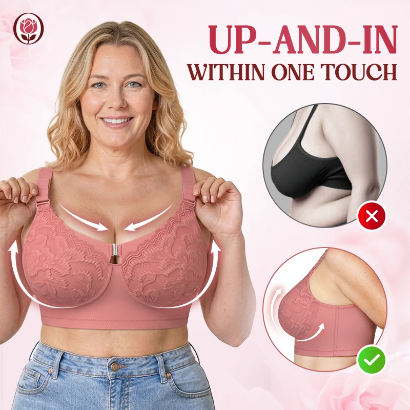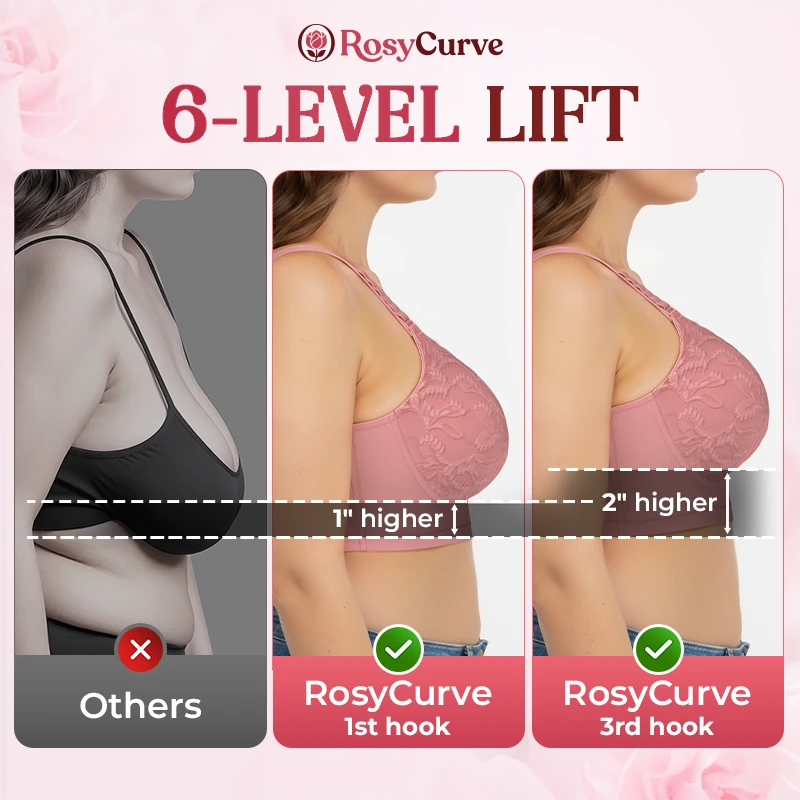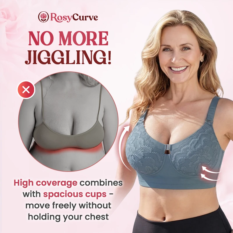 "After having kids, my 42DD chest really started to sag and drift to the sides. I was tired of underwires digging in just to get some shape. But RosyCurve changed everything. My gals are lifted powerfully without a single wire. I feel secure and "put back together" with everything finally front-and-center"
